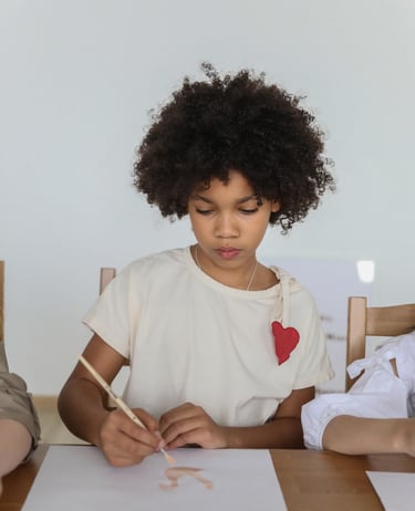 “I love drawing people. Sometimes I make them up in my head, and sometimes I draw my family or friends. At the art studio, we learn how to make people's faces and bodies look really realistic.“